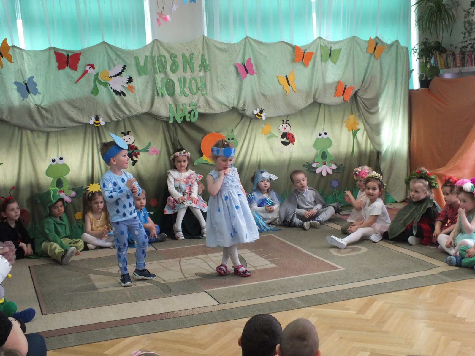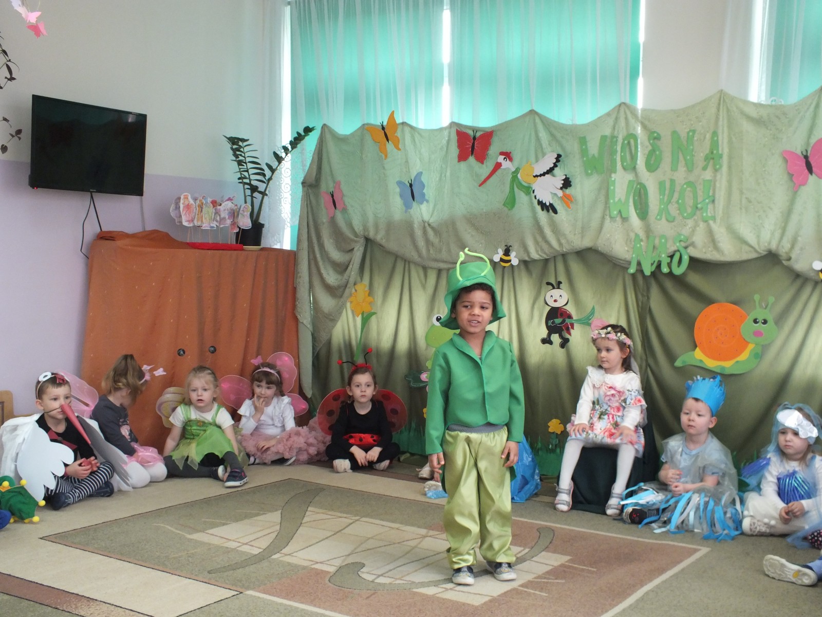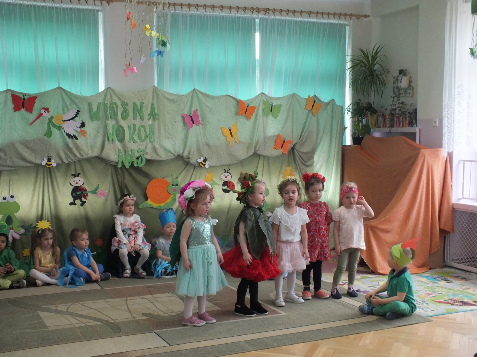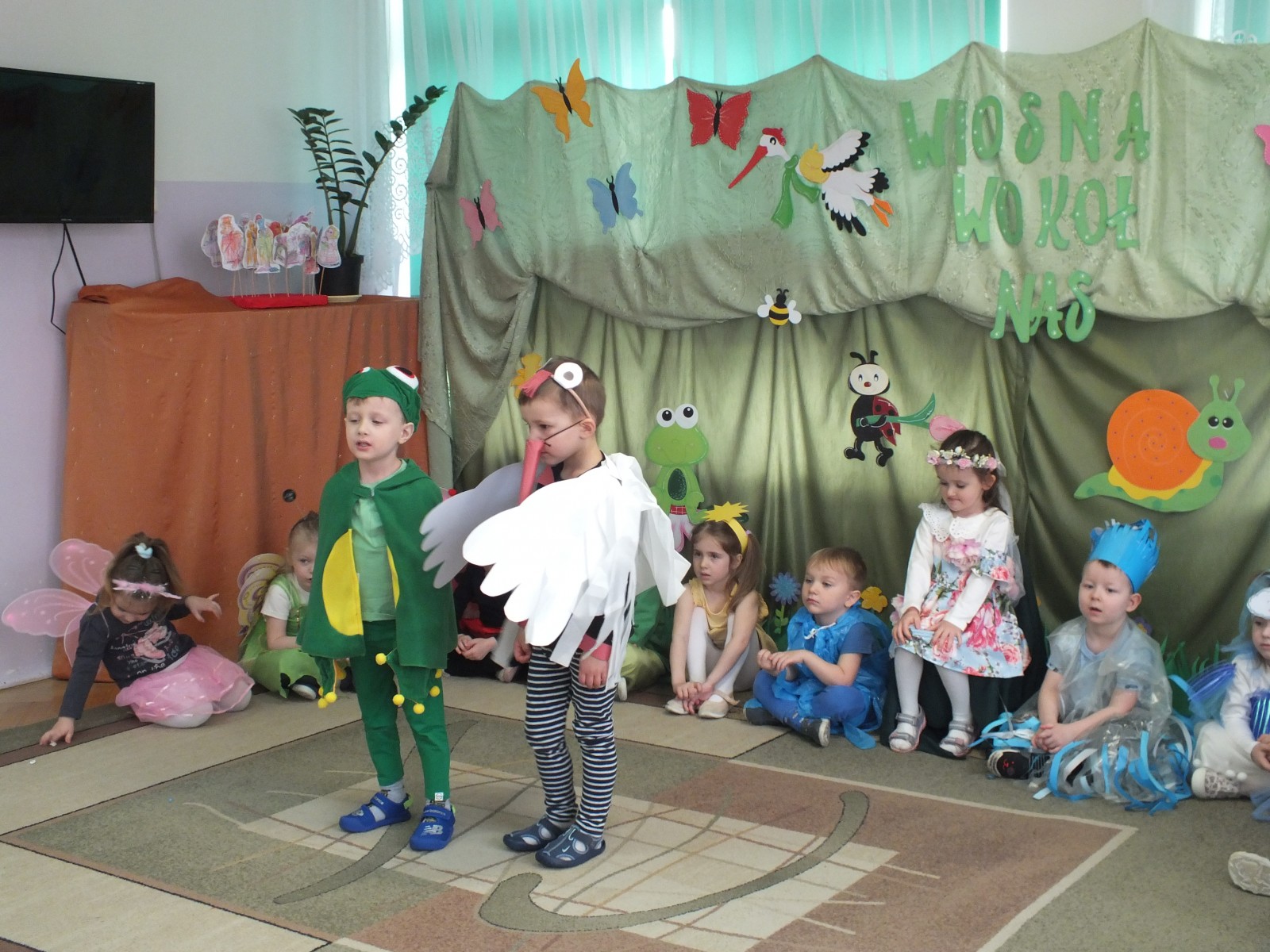 Najmłodsze przedszkolaki z grupy Leśne Duszki przygotowały w ramach Dni teatru barwne przedstawienie pt. Witaj Wiosno!