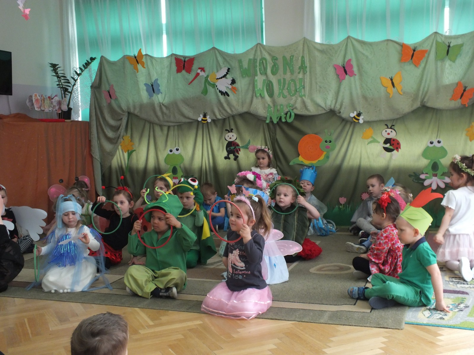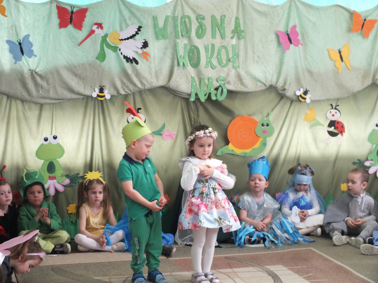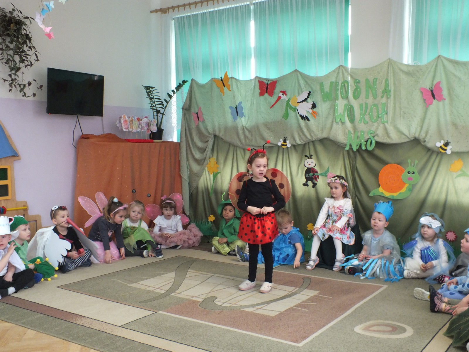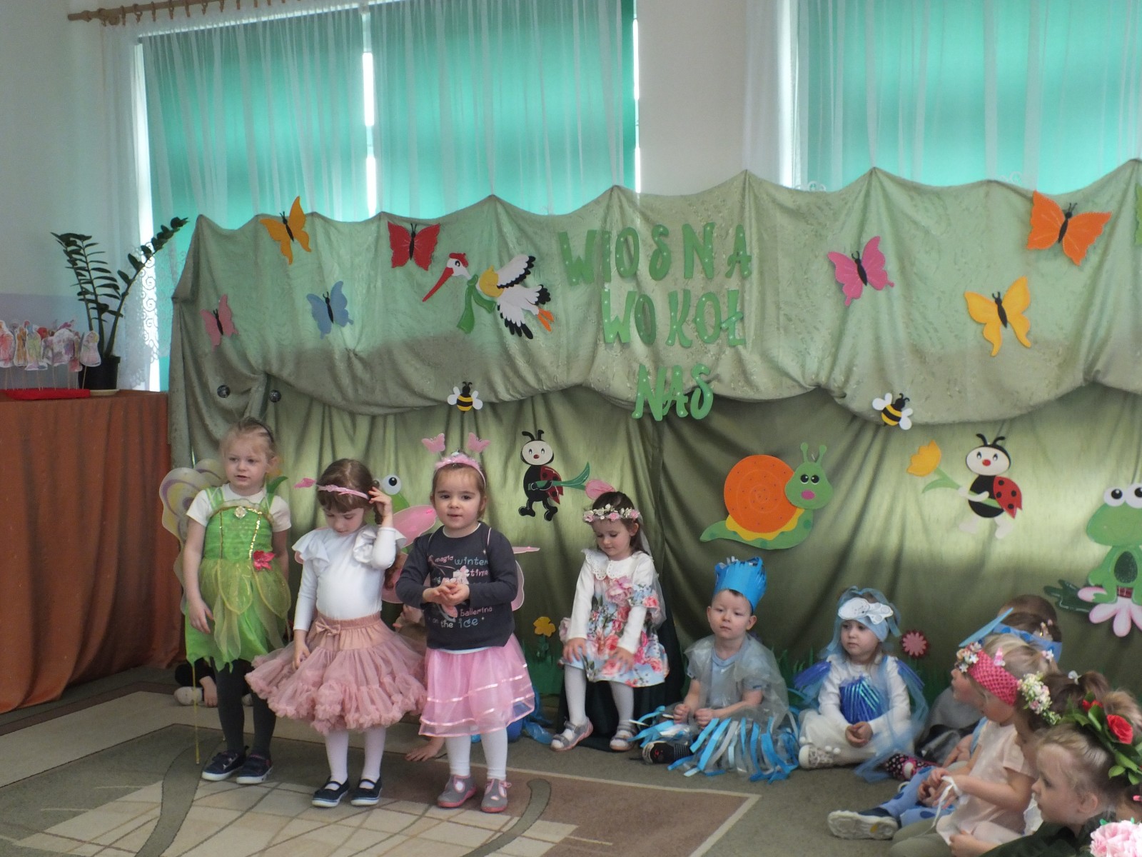 Najmłodsze przedszkolaki z grupy Leśne Duszki przygotowały w ramach Dni teatru barwne przedstawienie pt. Witaj Wiosno!