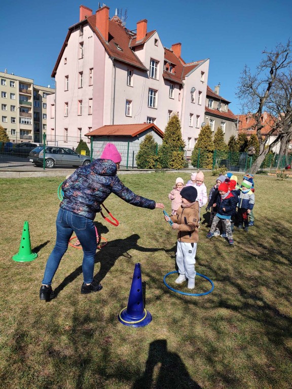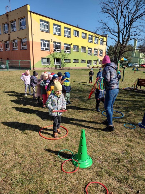 Przedszkolaki z grupy Ekoludki postanowiły wykorzystać piękną pogodę i aktywnie uczestniczyły w zajęciach sportowych na świeżym powietrzu. Dzieci wiedzą jak ważny jest ruch dla naszego zdrowia.