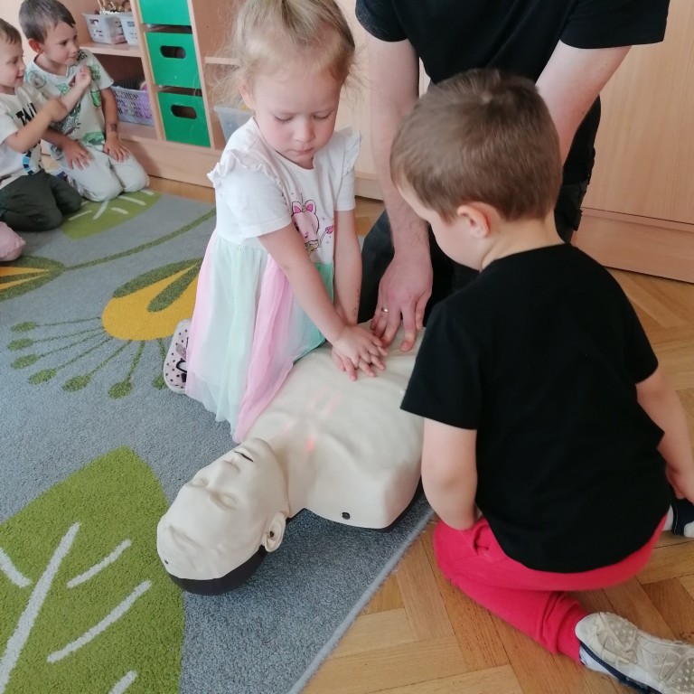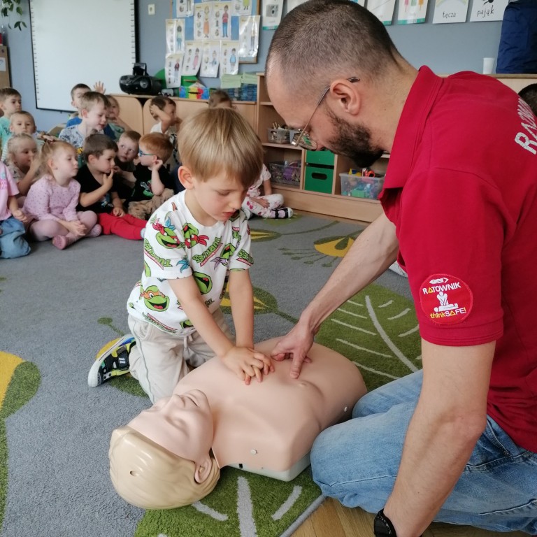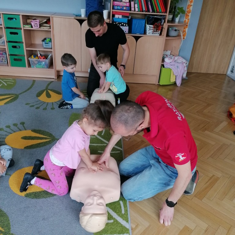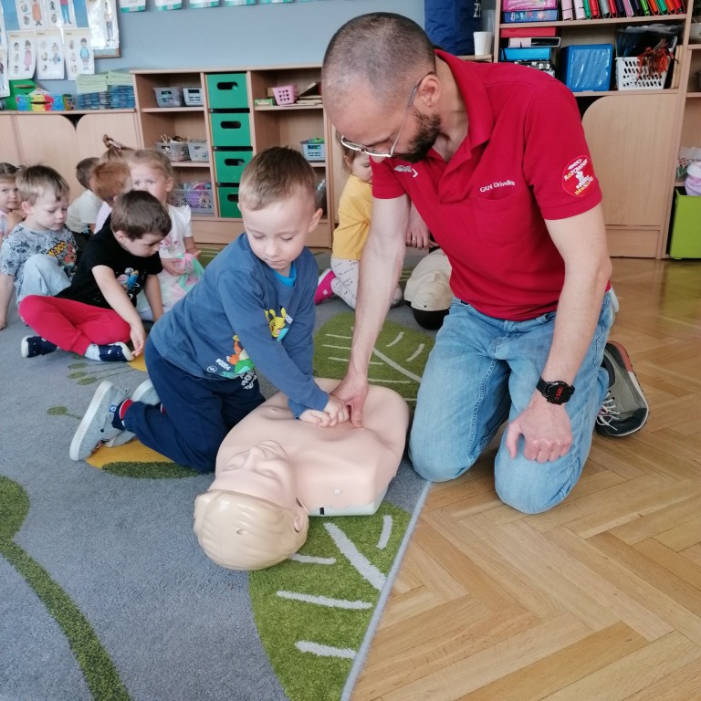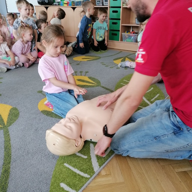We wtorkowy poranek przedszkolaki ze wszystkich grup wzięły udział w zajęciach „Akademii Małego Ratownika” przeprowadzonych przez ratowników z GKN Driveline w Oleśnicy. Ich celem było przypomnienie dzieciom, że każdy - duży i mały może pomóc uratować ludzkie życie.