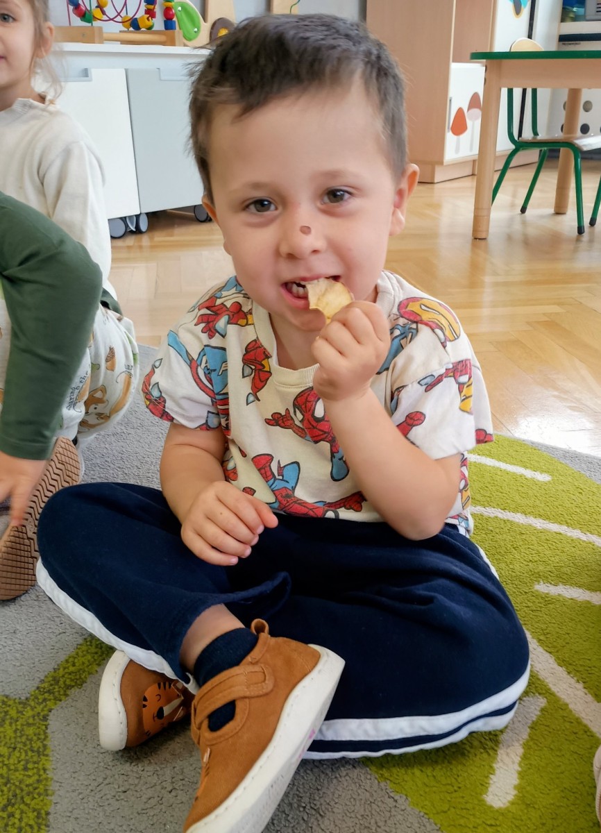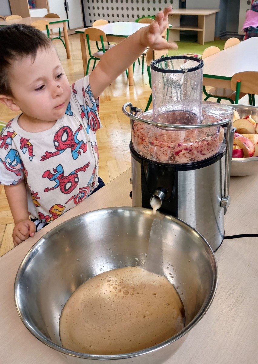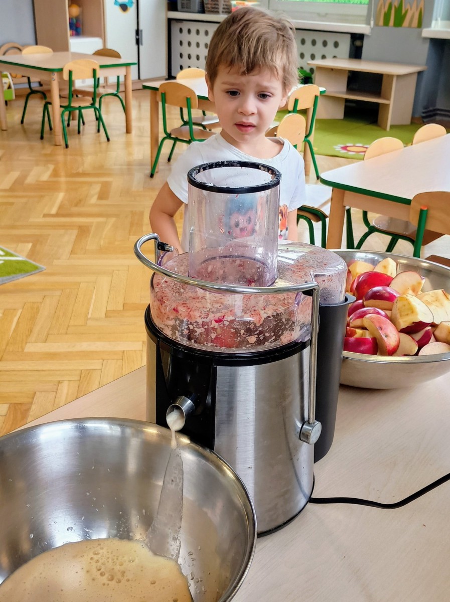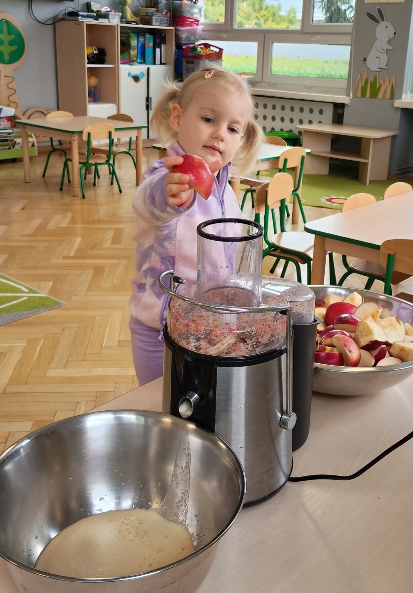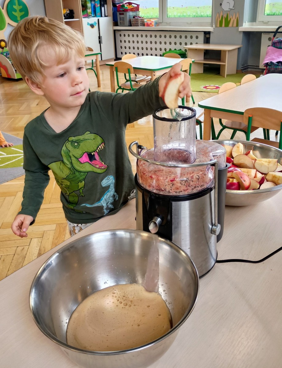 Dziś w przedszkolu wszyscy chłopcy uroczyście obchodzili swoje święto, natomiast Żabki połączyły to z Dniem Jabłka i kosztowały świeżych owoców, suszonych jabłek oraz przygotowały pyszny i zdrowy sok jabłkowy.
