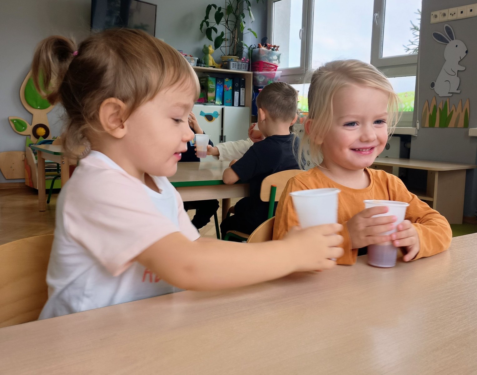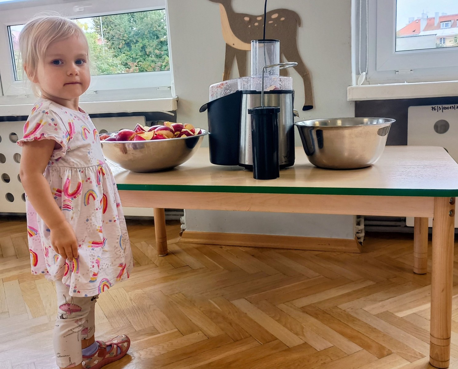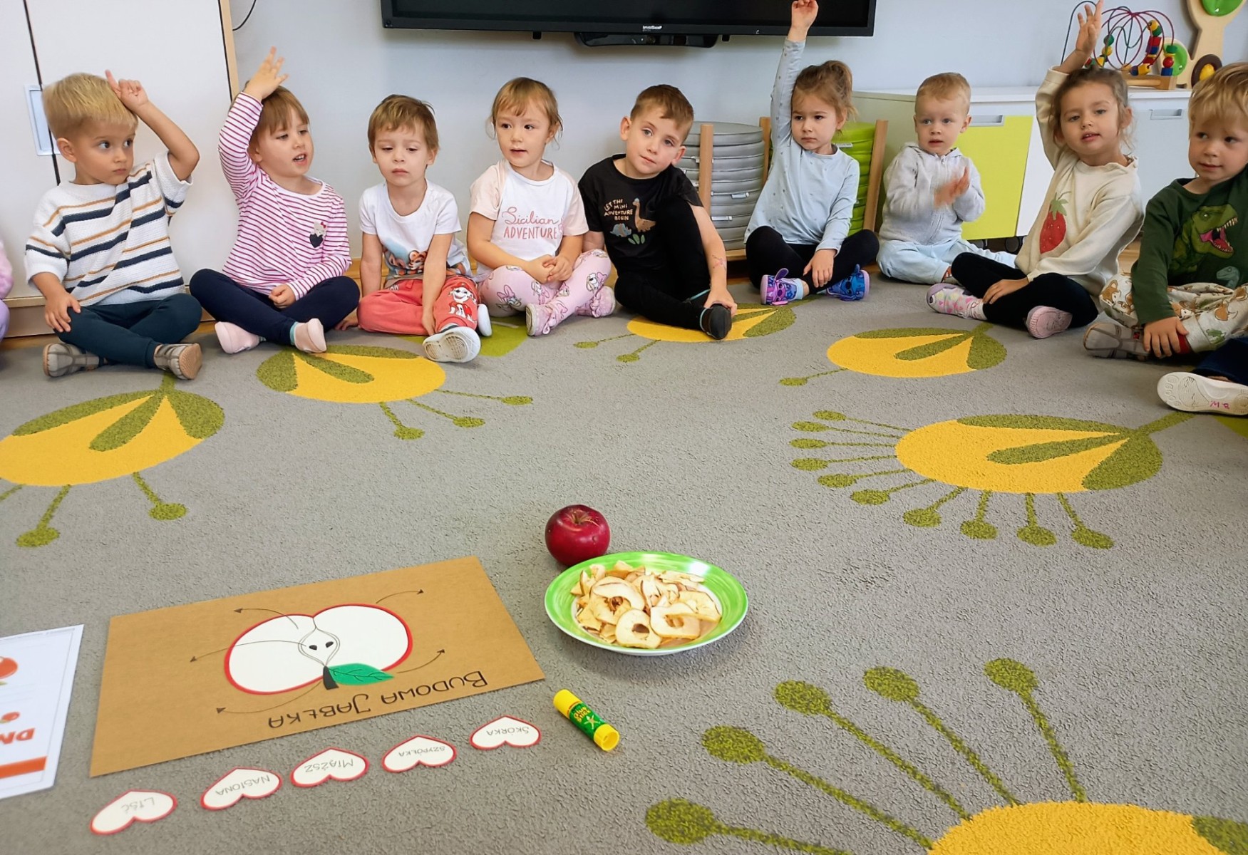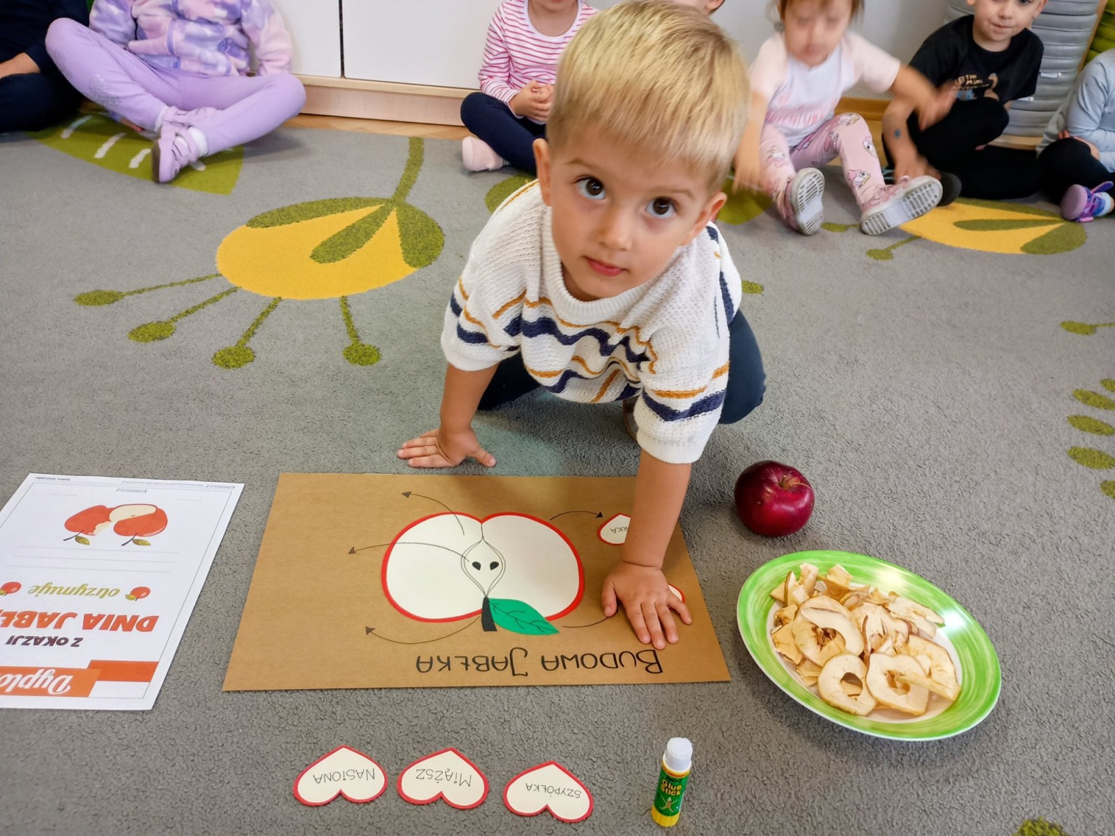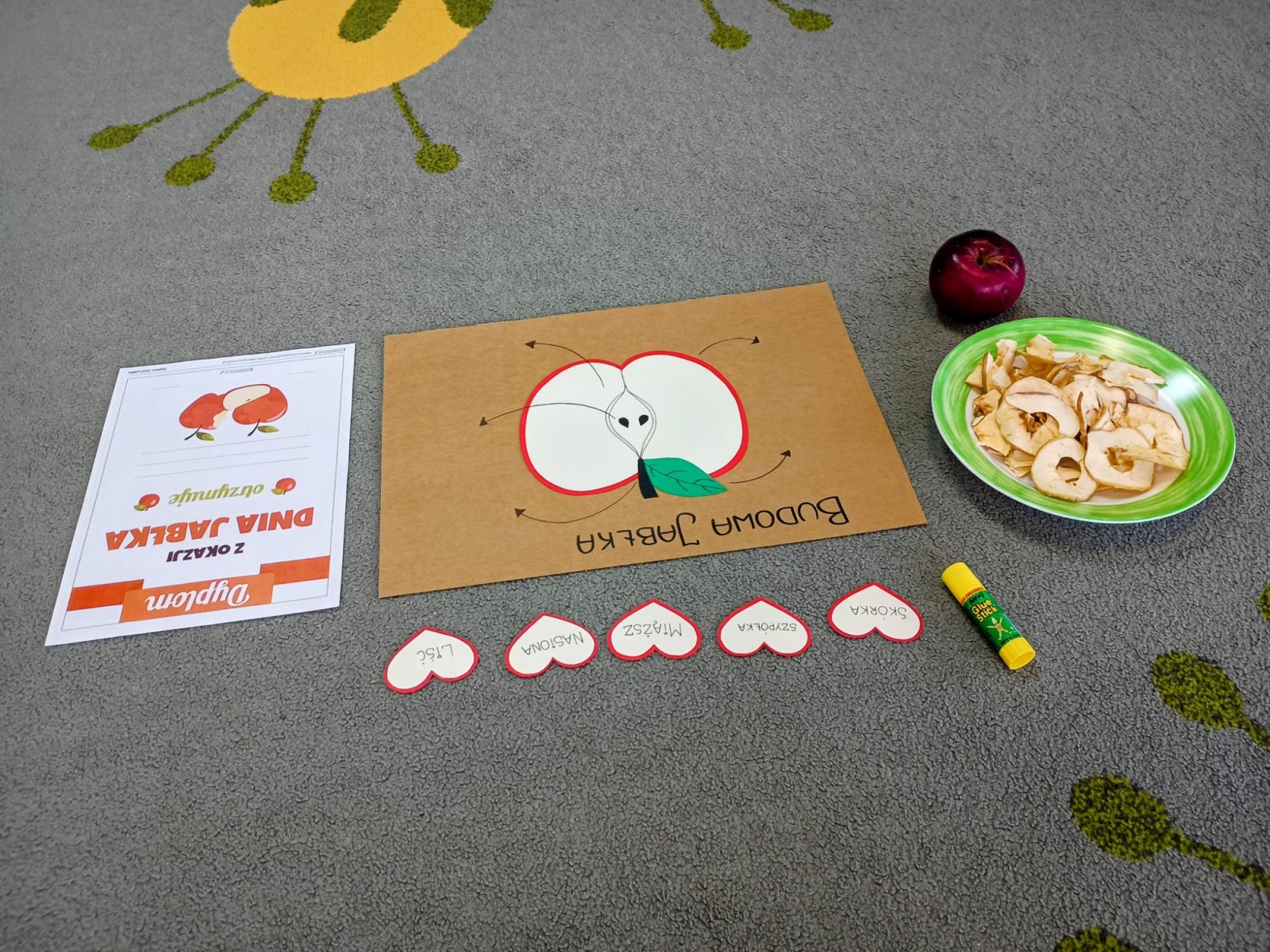 Dziś w przedszkolu wszyscy chłopcy uroczyście obchodzili swoje święto, natomiast Żabki połączyły to z Dniem Jabłka i kosztowały świeżych owoców, suszonych jabłek oraz przygotowały pyszny i zdrowy sok jabłkowy.