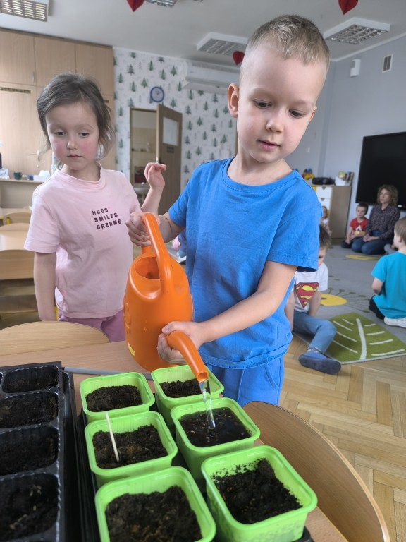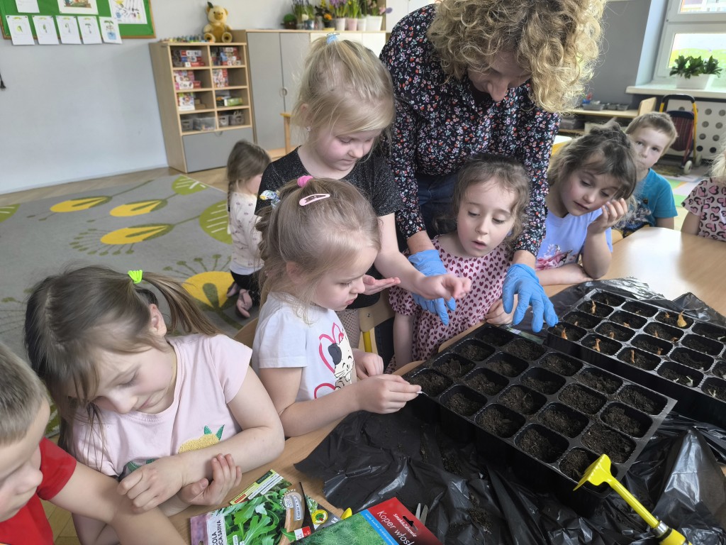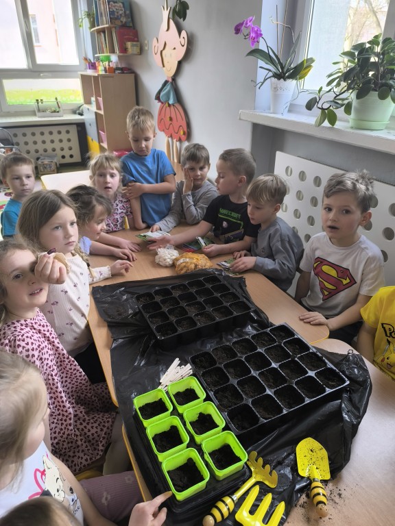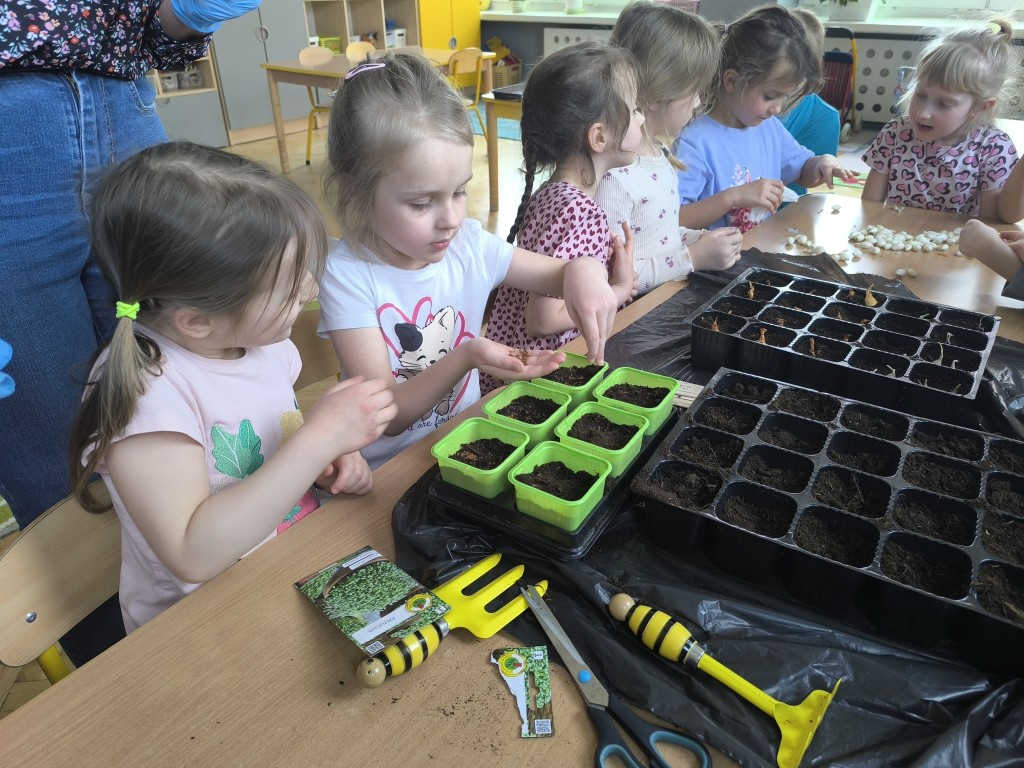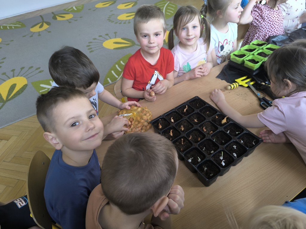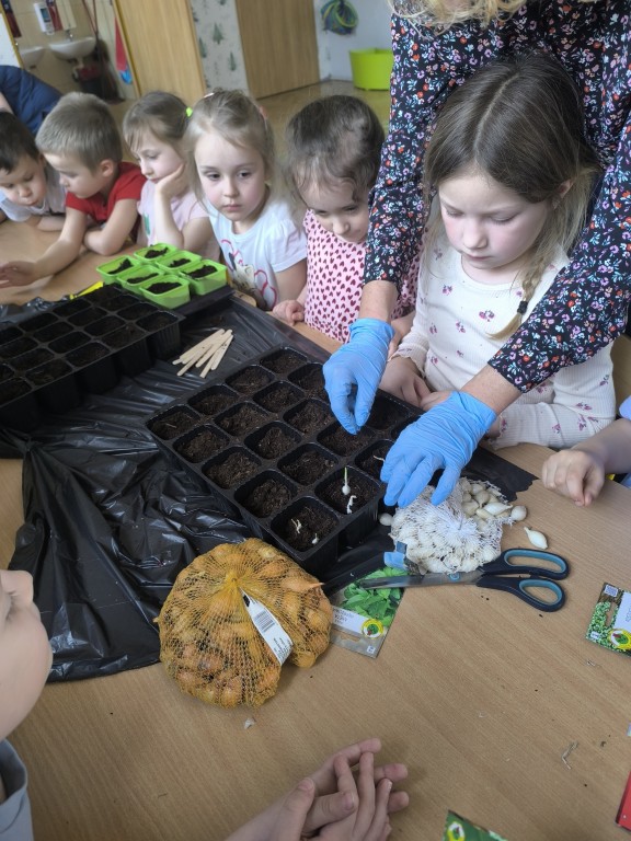 Starszaki z grupy Ekoludki powitały wiosnę tworząc na sali zielony ogródek. Dzieci aktywnię włączyły sie w sadzenie ziół i kwiatów. Podczas zajęć dydaktycznych utrwalały wiedzę na temat zmian zachodzących w przyrodzie w okresie przedwiośnia. Ekoludki stworzyły kącik przyrody przynosząc do przedszkola wczesnowiosenne kwiaty: szafirki, żonkile, krokusy, hiacynty.