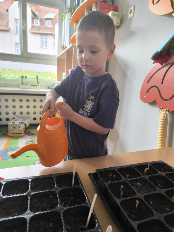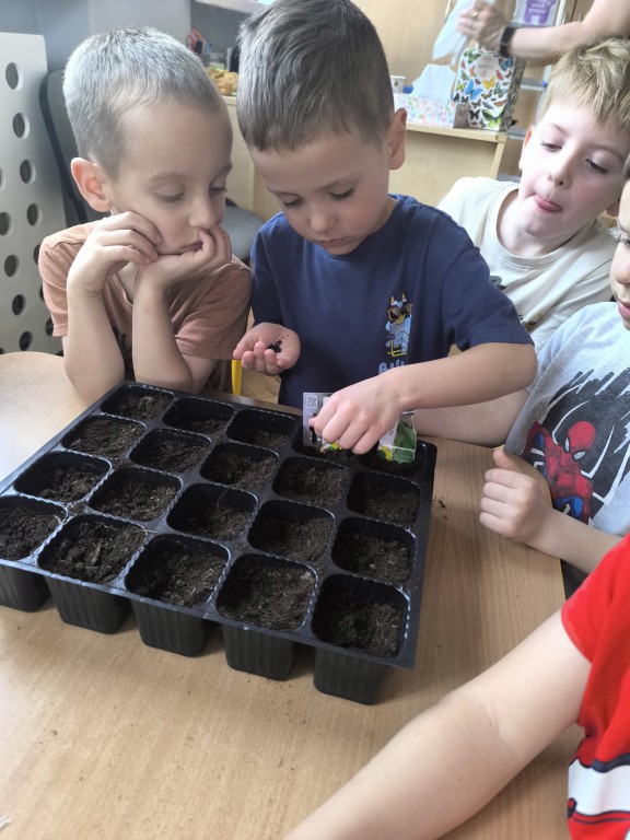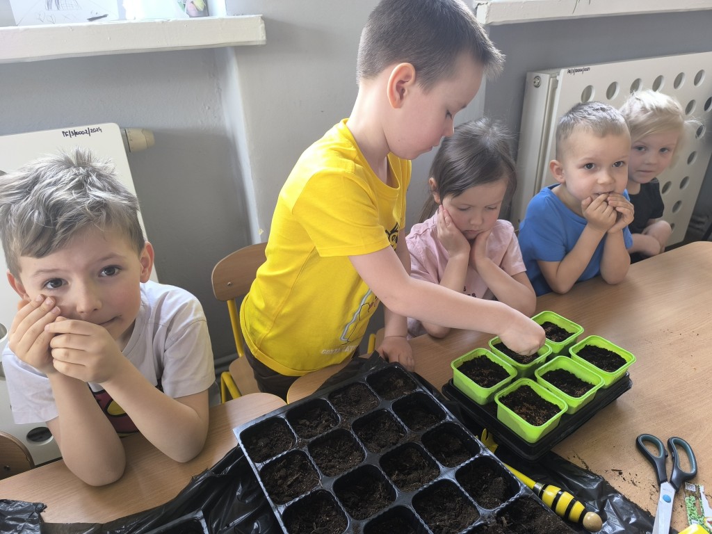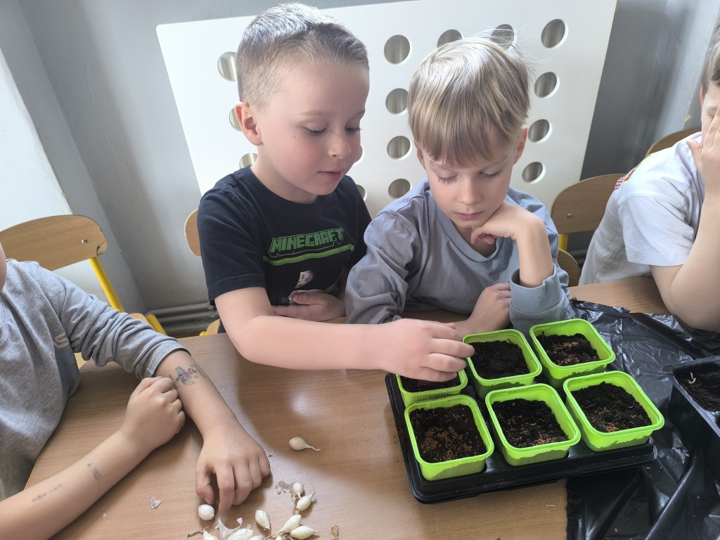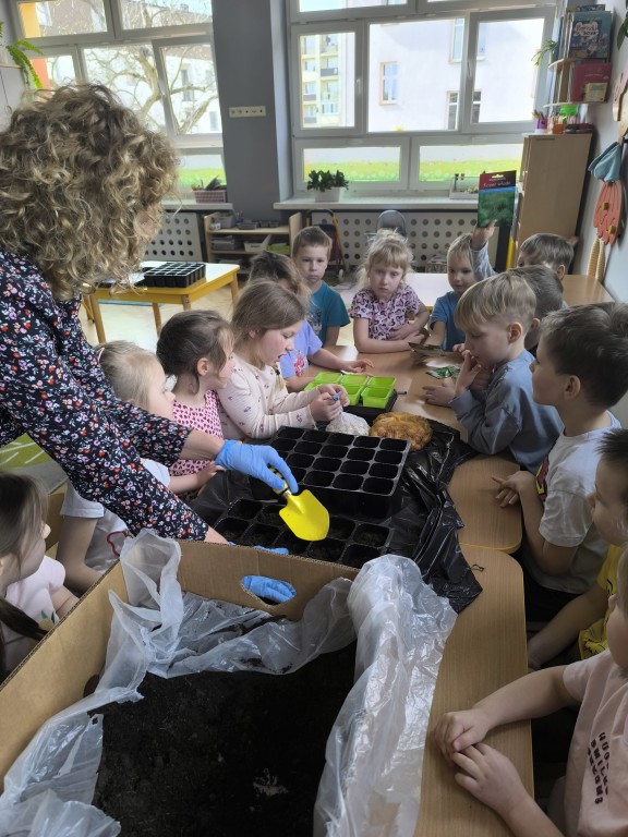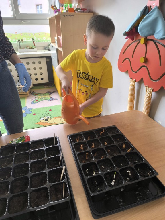 Starszaki z grupy Ekoludki powitały wiosnę tworząc na sali zielony ogródek. Dzieci aktywnię włączyły sie w sadzenie ziół i kwiatów. Podczas zajęć dydaktycznych utrwalały wiedzę na temat zmian zachodzących w przyrodzie w okresie przedwiośnia. Ekoludki stworzyły kącik przyrody przynosząc do przedszkola wczesnowiosenne kwiaty: szafirki, żonkile, krokusy, hiacynty.