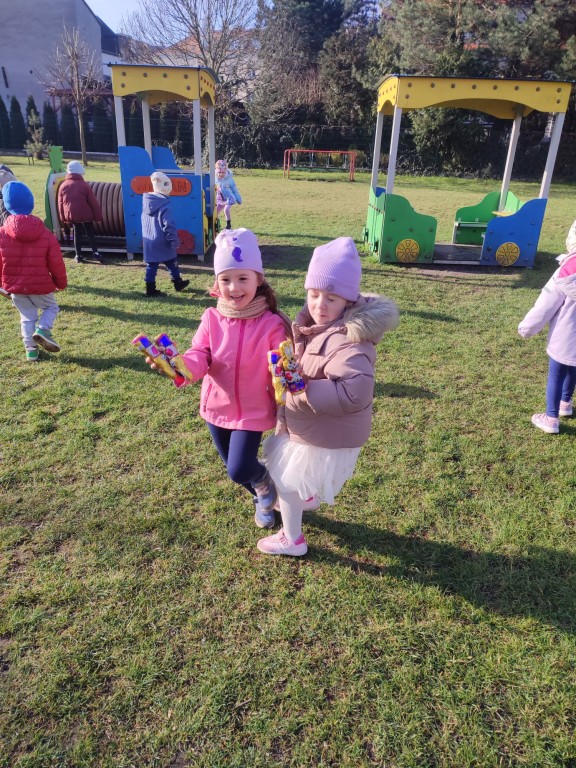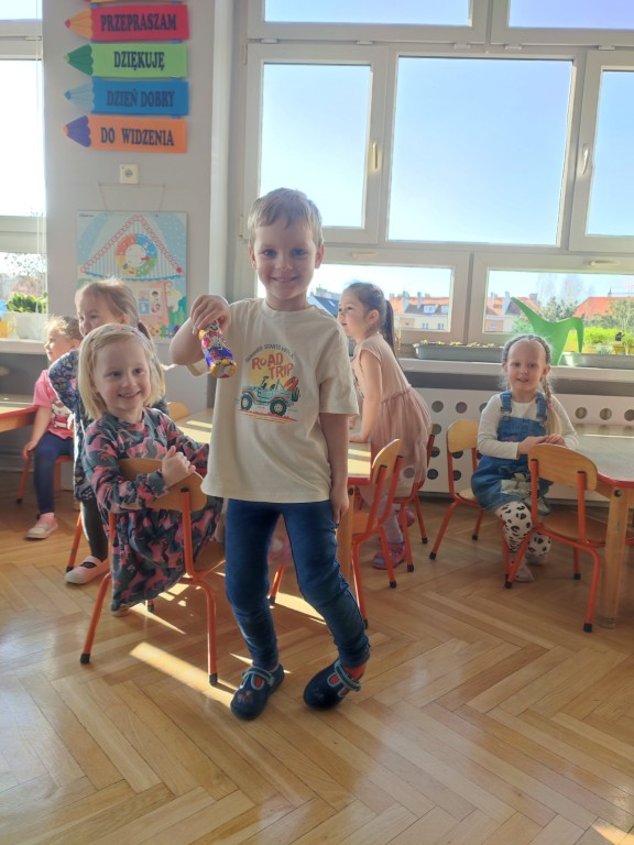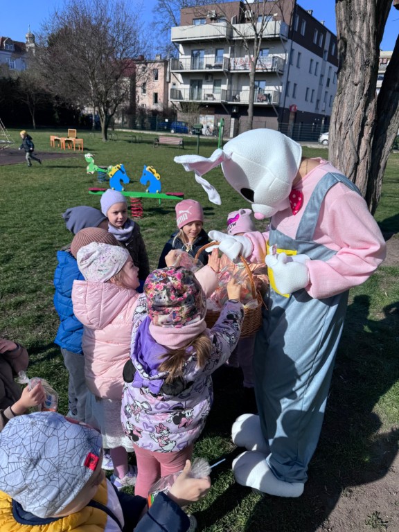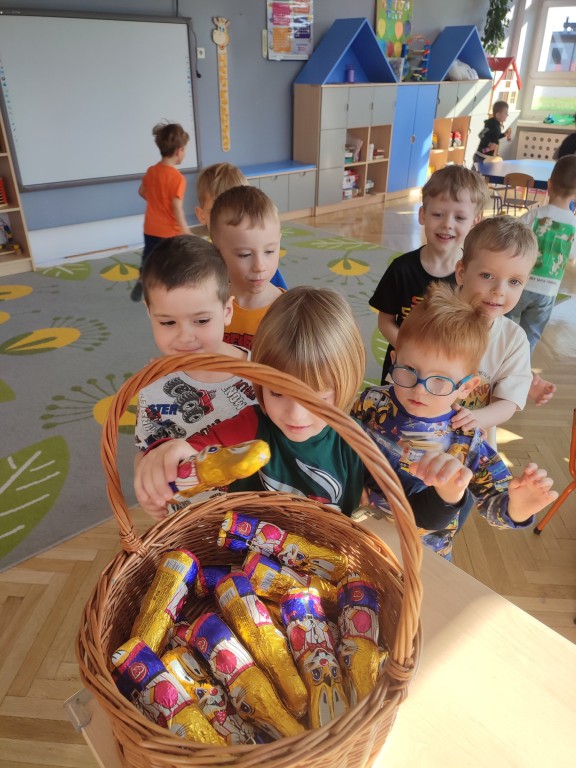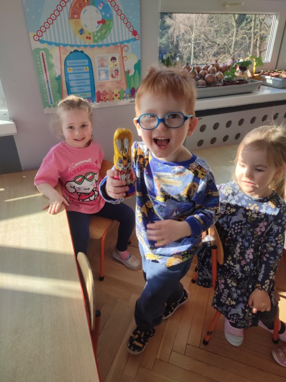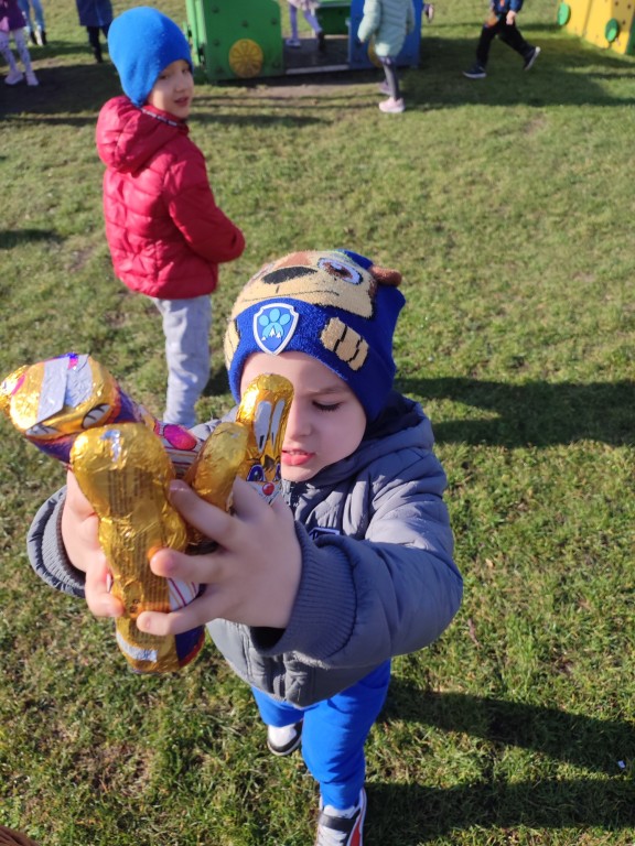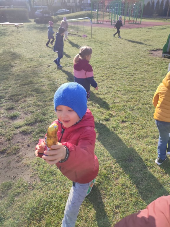 Dzieci z grupy „Leśne duszki” i "Krasnale" z wielkim zaangażowaniem wzięły udział w poszukiwaniu czekoladowych zajączków. To był dzień pełen wiosennej energii, który na długo pozostanie w ich pamięci.